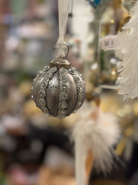 Julekule sølv matt med glitter 6 cm The MOSHI