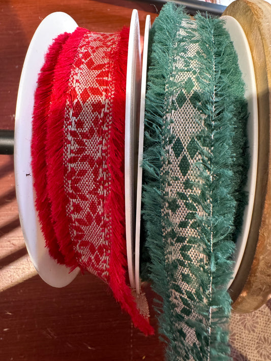 Bånd med mønster rufset kant rødt