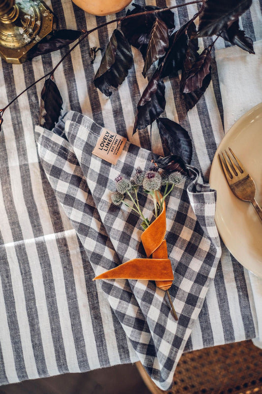 Kjøkkenhåndkle rutet Misty brun hvit Lovely linen kommer inn