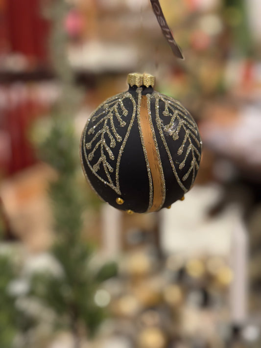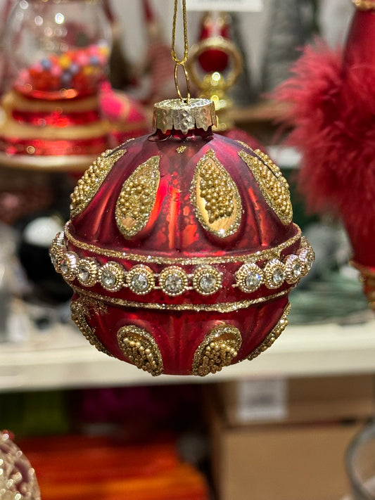 Julekule rød med diamantbelte og gullpynt 6 cm The Moshi