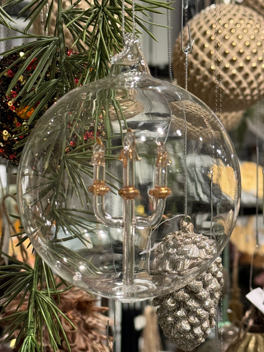 Julekule klar glass med kandelaber 10 cm Shishi