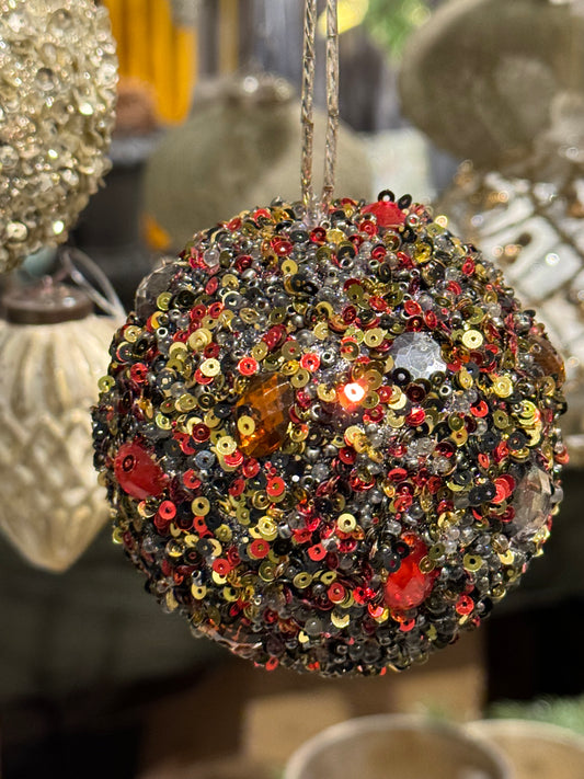 Julekule bling rød gull brun 8 cm Shishi