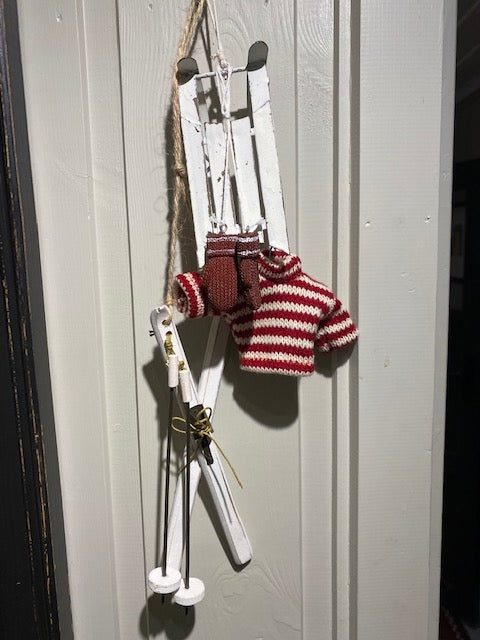 Julepynt sport Ski m staver hvite Shishi