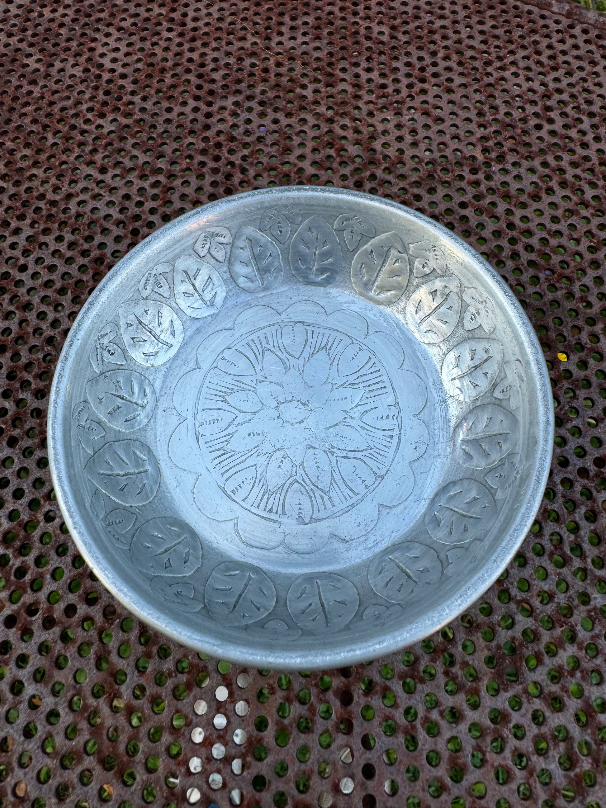 Metall brikke til å sette et kubbelys på eller annet. Kan også benyttes til mat