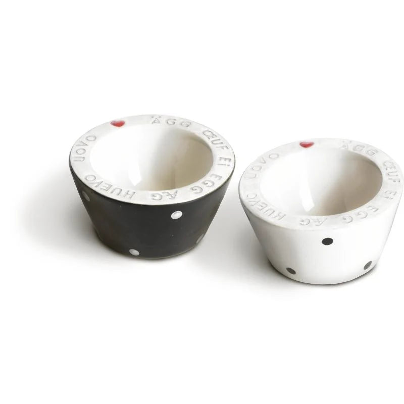 det er et lite rødt hjerte på kanten hvor det står egg på forskjellige språk