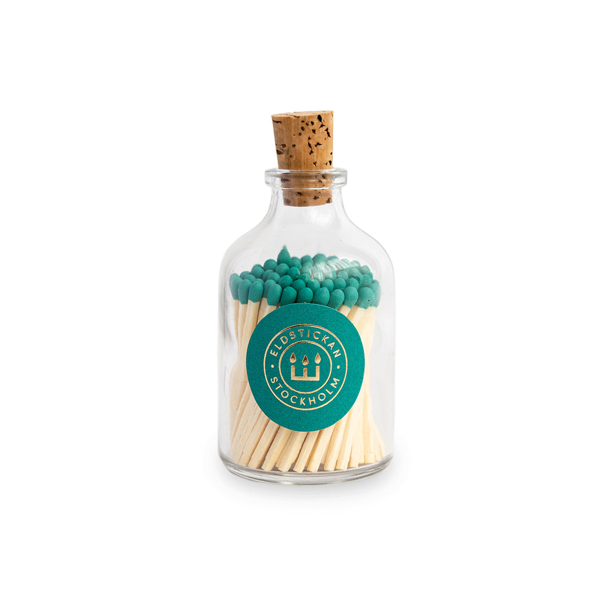 Fyrstikker petroleumgrønn rundt glass Eldstickan