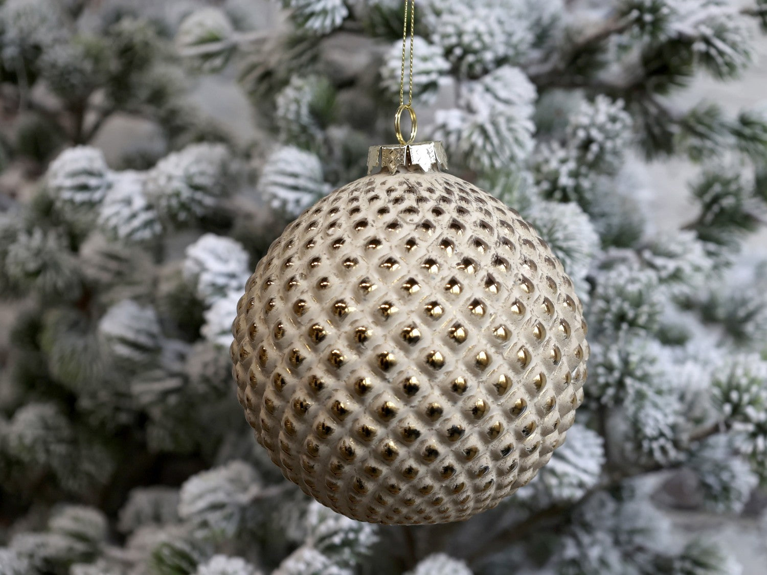 Julekule beige krem med gull 10 cm Chic Antique