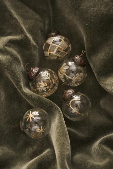10 små kuler i posen, 2 av hvert mønster, fine å kombinere med andre kuler