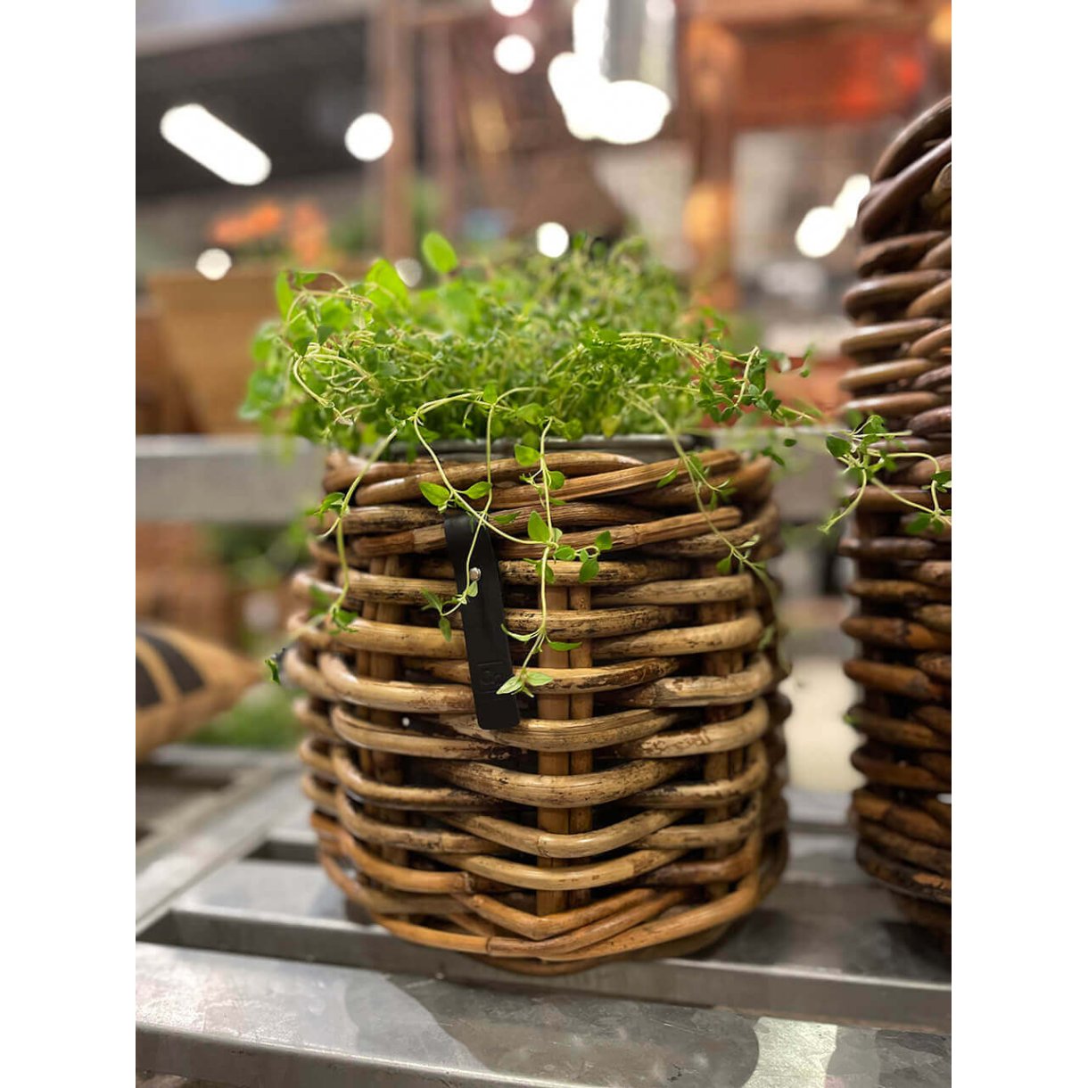 Håndvevet, rustikk og autentisk rund rattankurv. Rattankurven er håndvevet (og dermed ikke maskinlaget) med kraftige og massive stengler av CL rattan, som gir en optimal slitestyrke og holdbarhet for produktet. Grunnet den store variasjon i utseendet av rattanstenglene, og med en miks av både mørkere og lysere samt flekkete stengler, oppnås det her et naturlig utseende og ikke to kurver vil være 100% like. Kurven er perfekt til planter, oppbevaring, dekorasjon, mm.