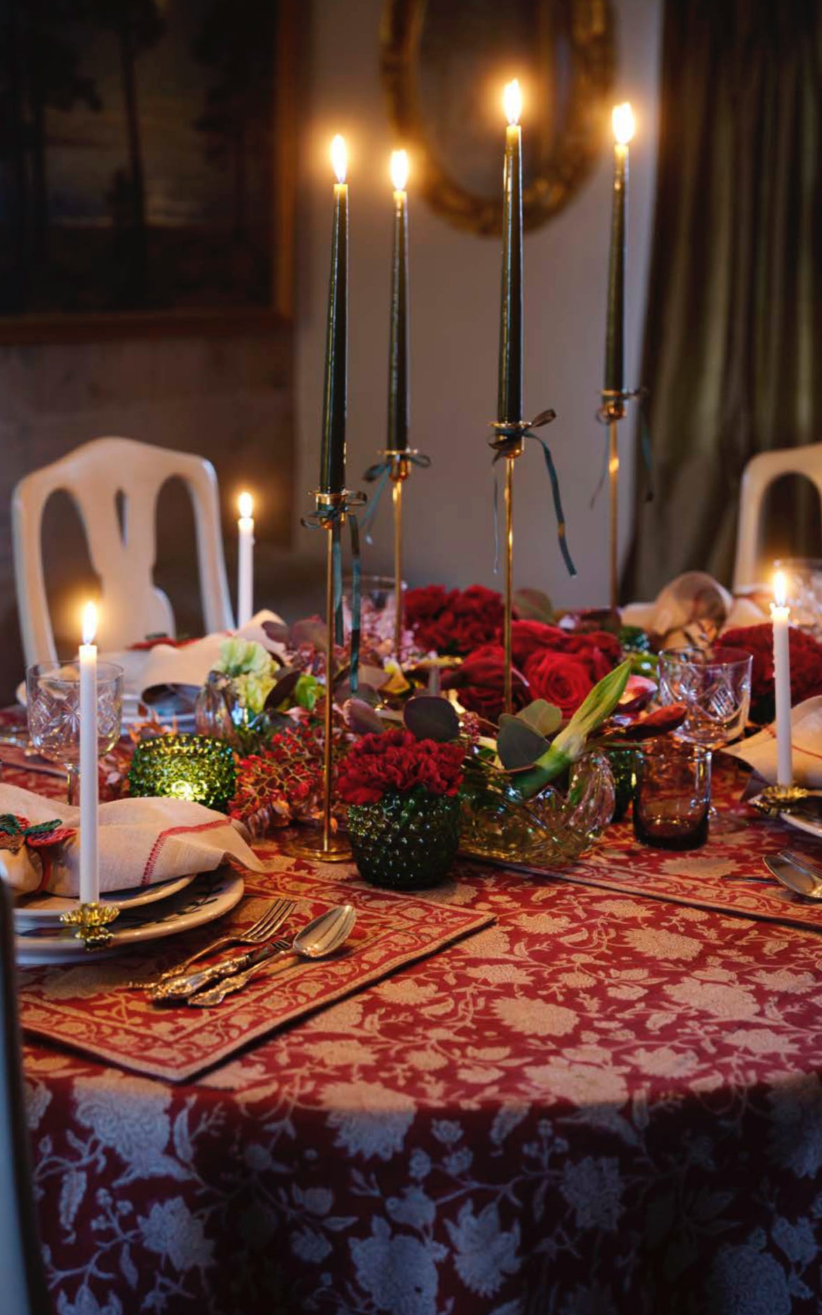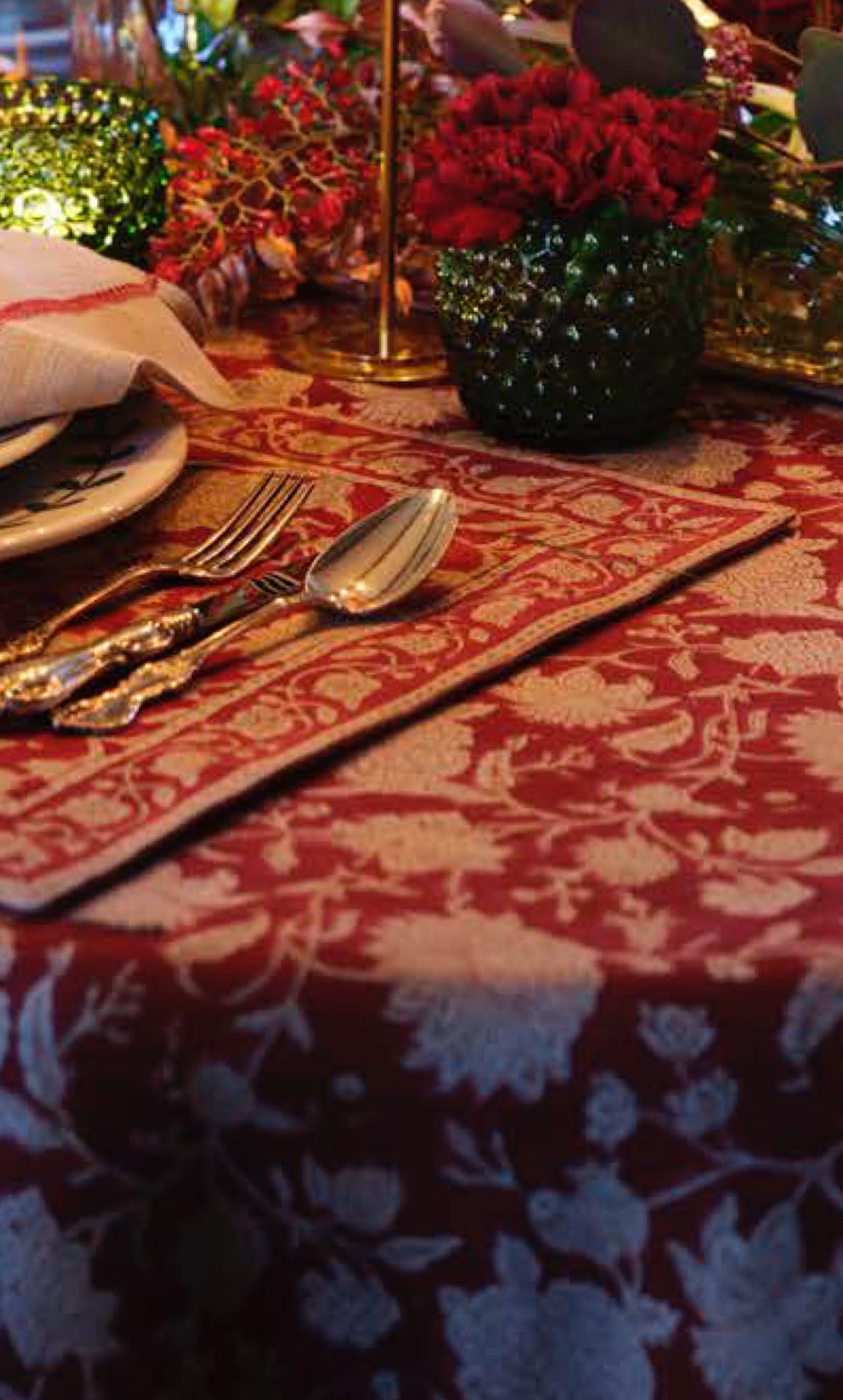 Duk lin Indian Rose - rød rund - 220cm Chamois