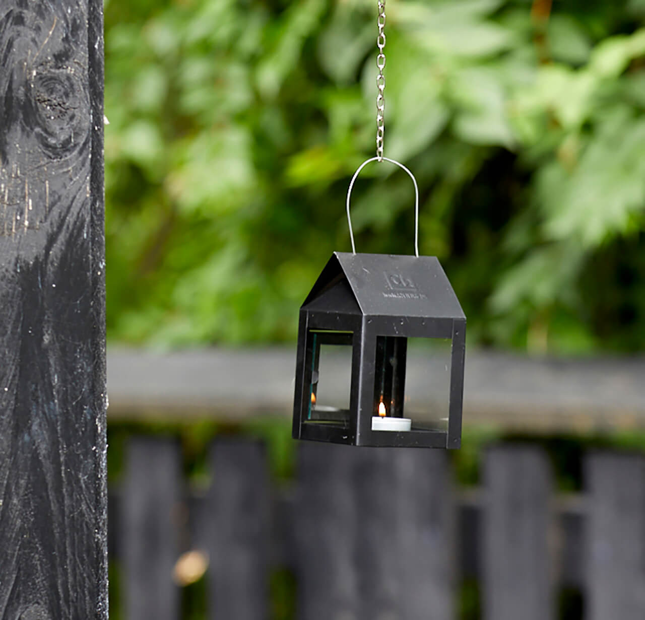 Liten lanterne i jern. Størrelsen passer til telys. Det skaper en flott stemning ved å sette flere av disse små lyktene sammen. Kan henges i trær, på snor eller på andre små kroker.