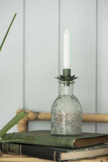 Passer til juletrelys. Lysholder i grønt metall fra Ib Laursen. Passer perfekt i tuten på apotekflaskene fra Ib laursen.