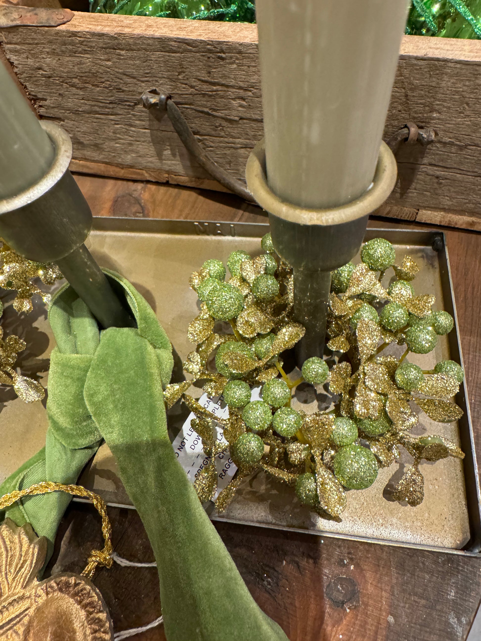 lysmansjett som passer til alle lysestaker i glimrende gull og grønt
