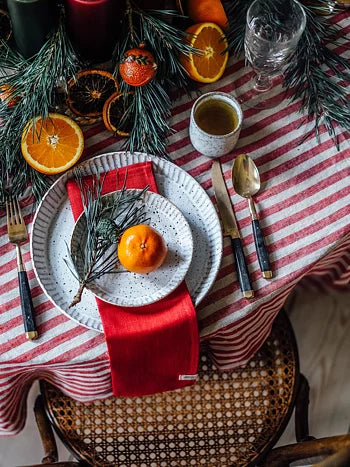 Misty Duk lin stripet rød og linfarget 145x250 Lovely linen