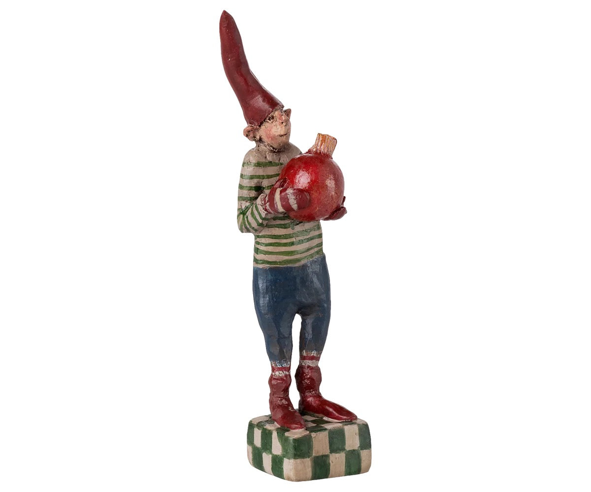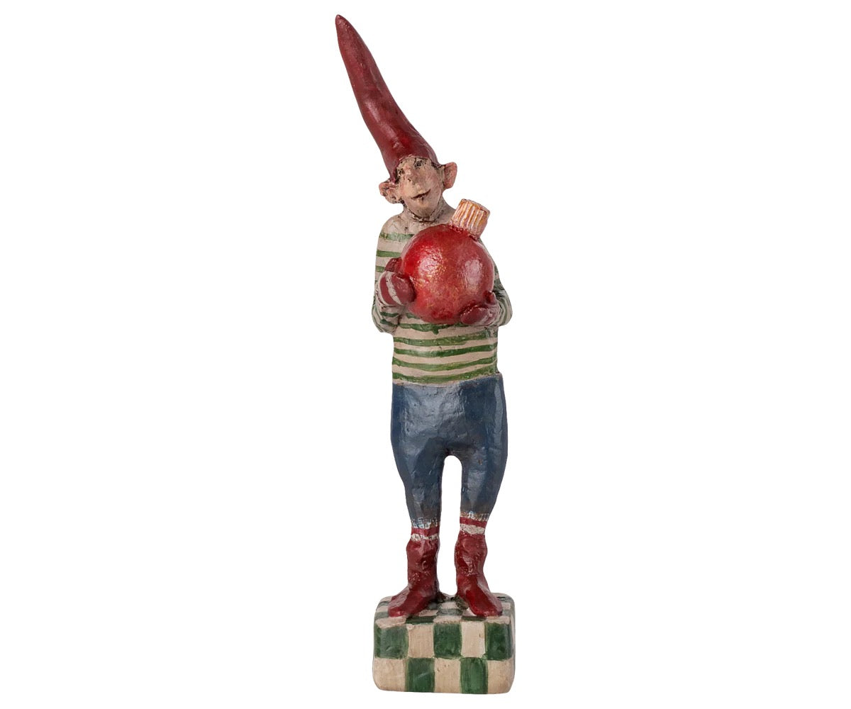 no 32 høyde 16 cm, kommer nå med rød julekule, samme modell i 2022 hadde grønn julekule