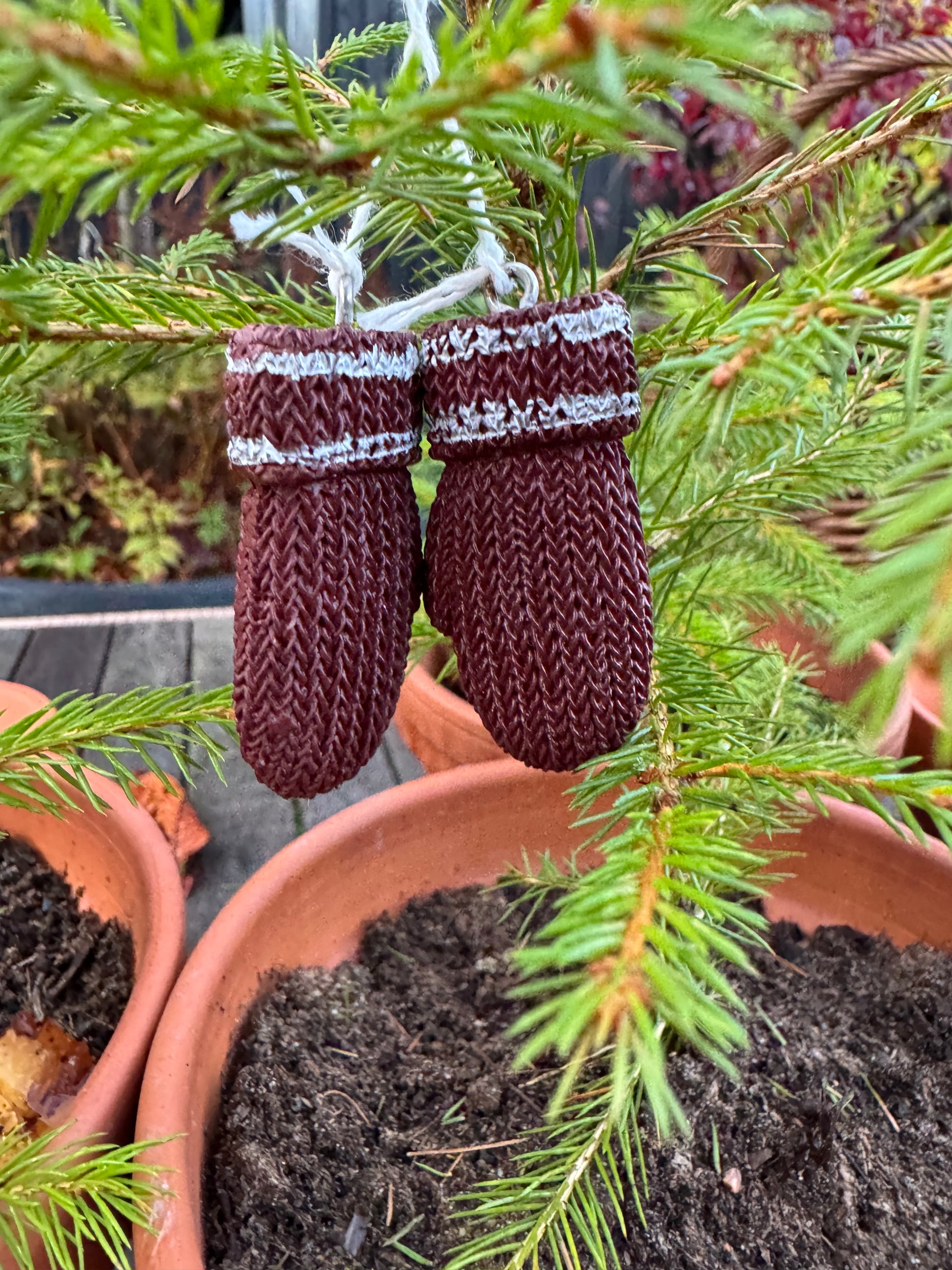Mini votter til pynt, laget i polyresin.
